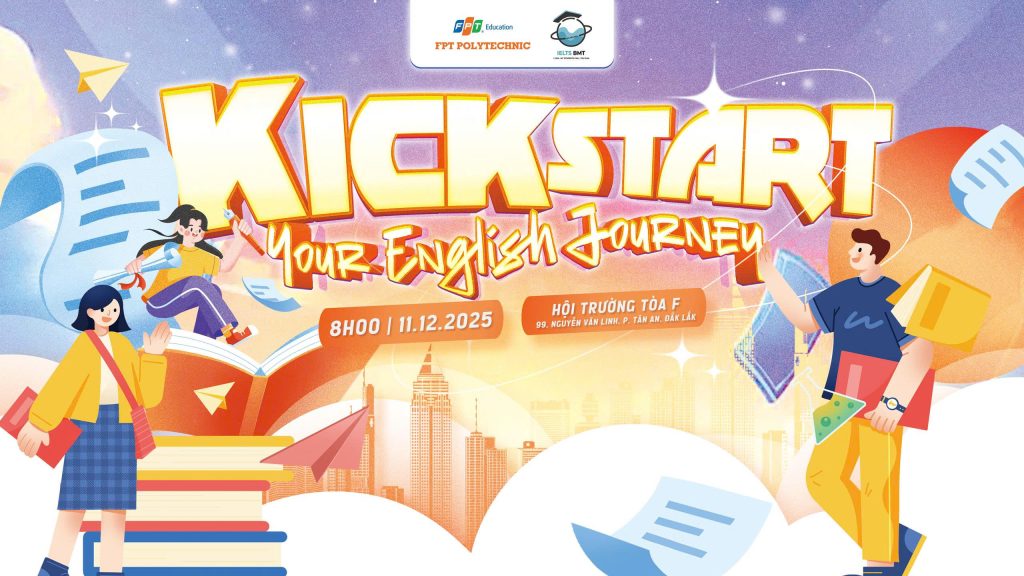 🥳IELTS BMT X FPTPOLYTECHNIC TÂY NGUYÊN 🥳 💗CUỘC THI “KICKSTART YOUR ENGLISH JOURNEY”: KHỞI ĐỘNG HÀNH TRÌNH TIẾNG ANH CỦA BẠN MỘT CÁCH VỮNG VÀNG VÀ HIỆU QUẢ Trong bối cảnh Tiếng Anh ngày càng trở thành kỹ năng quan trọng đối với sinh viên, việc rèn luyện và định hướng đúng ngay từ giai đoạn đầu đóng vai trò then chốt. Với mong muốn hỗ trợ sinh viên ôn tập kỹ năng nói, đồng thời chuẩn bị tốt cho các buổi đánh giá học phần, Bộ Môn Cơ Bản -Trường Cao đẳng FPT Polytechnic cơ sở Tây Nguyên phối hợp cùng Trung tâm Ngoại ngữ IELTS – BMT triển khai cuộc thi “Kickstart Your English Journey” như một hoạt động học thuật thiết thực và ý nghĩa. 👉Chương trình được tổ chức với các mục tiêu:
