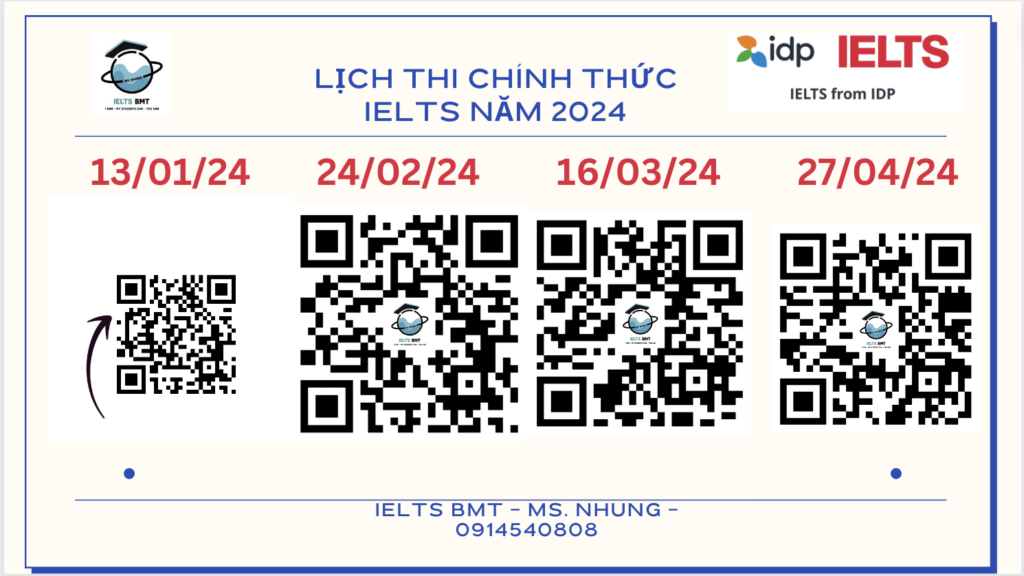 LOA LOA LOA …HÓTTTTT Lịch thi IELTS tại BUÔN MA THUỘT năm 2024 đã cố định Các bạn hãy quyét mã QR với ngày thi tương ứng và làm theo hướng dẫn nhé!!!!! ========== 40 trường ĐH công bố tuyển sinh bằng IELTS) IELTS – BMT #ieltsbmt#ieltsbmtmsnhung LUÔN CAM KẾT!!!! học phí siêu rẻ, chất […]