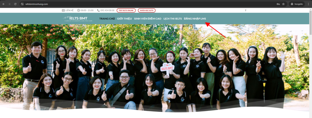 Bước 1. Truy cập địa chỉ https://ieltsbmtmsnhung.edu.vn