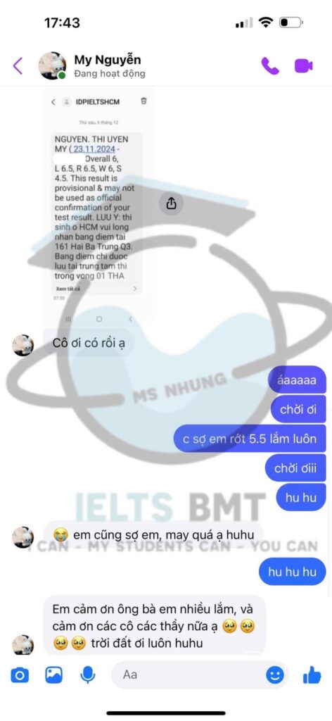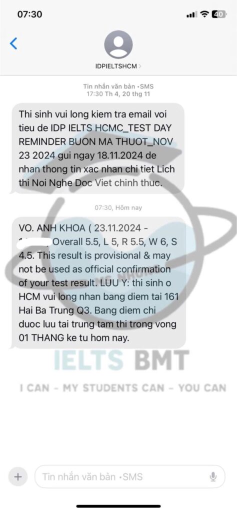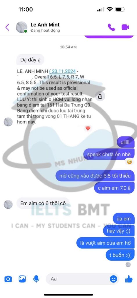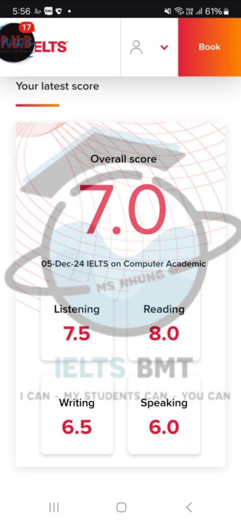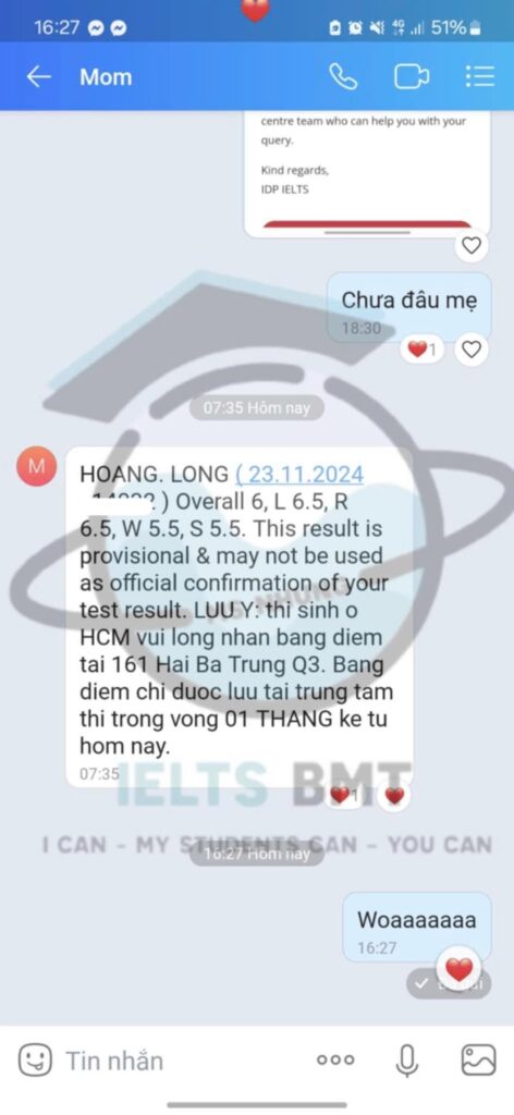 Những điểm số ấn tượng này không chỉ là con số mà còn là minh chứng cho hành trình chăm chỉ và sự đồng hành tận tâm của đội ngũ giáo viên tại IELTS BMT.