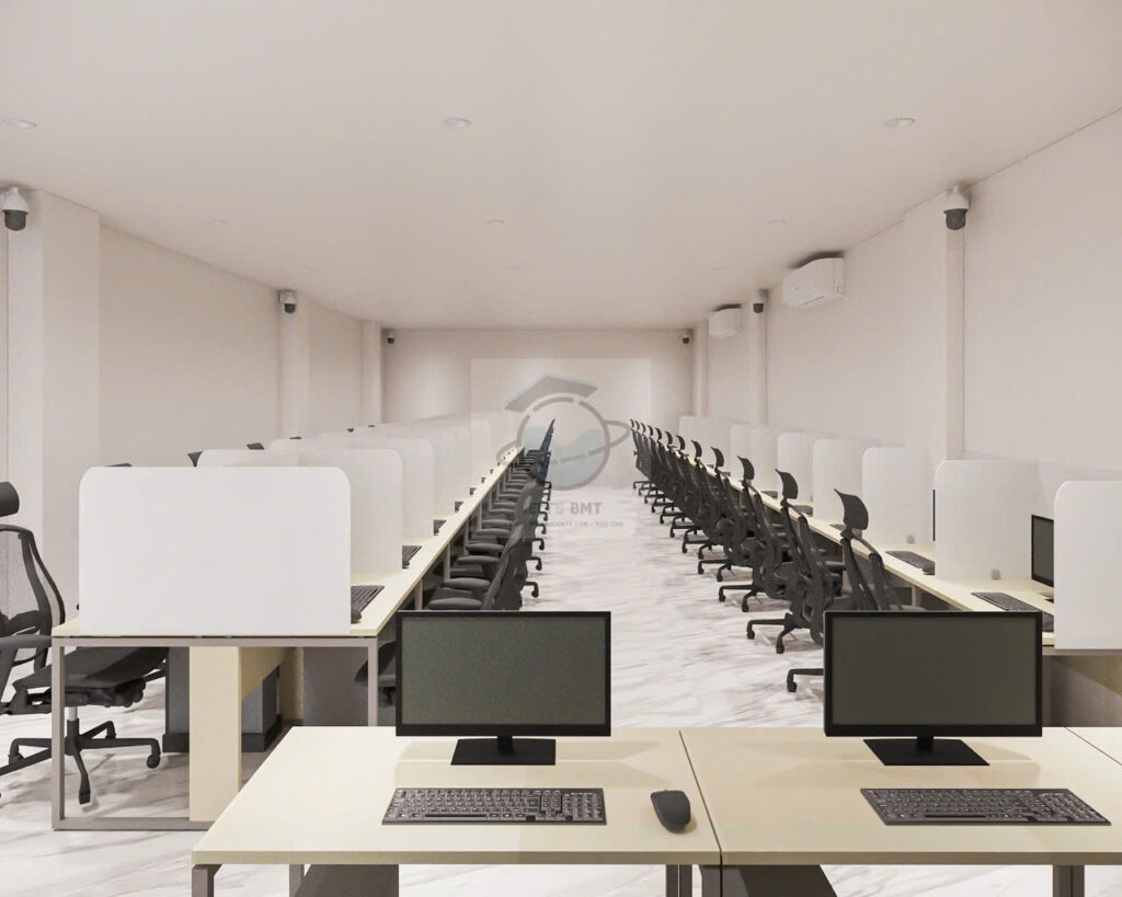 Phòng thi rộng rãi, trang thiết bị hiện đại.