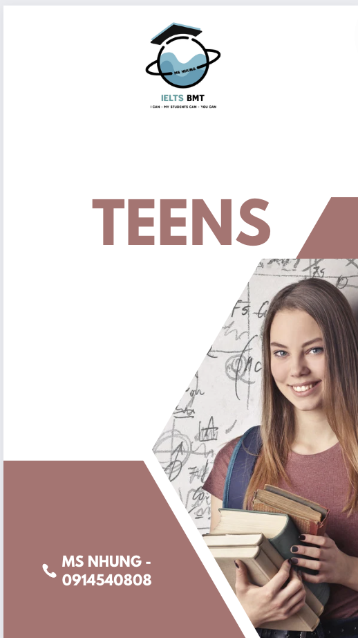 Chương trình Tiếng Anh Thiếu Niên, chỉ có tại IELTS BMT, tích hợp Tiếng Anh trên trường, phát triển 04 kỹ năng theo định hướng bài thi IELTS, và phản xạ tiếng với giáo viên nước ngoài.